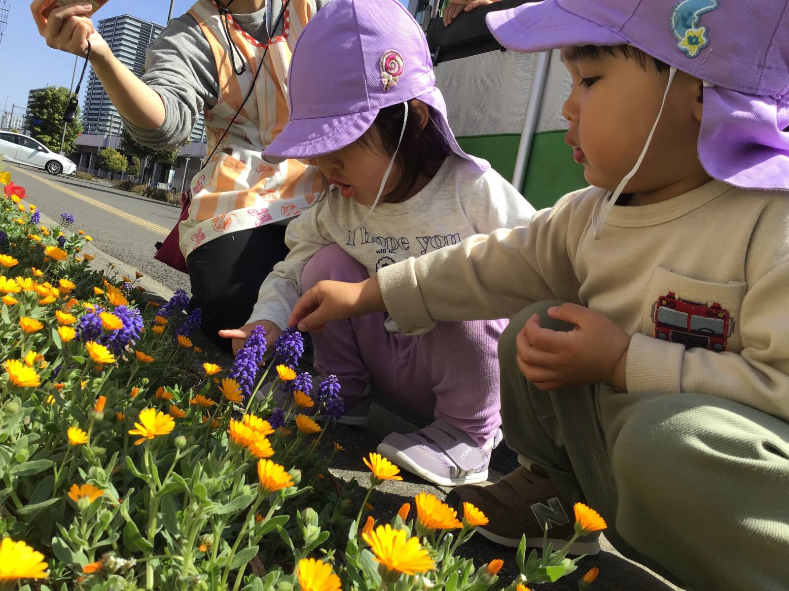 長町園のお子様達は今日も警察署前の花壇のお花を見たりアリさんの観察に夢中でしたよ😄🎶