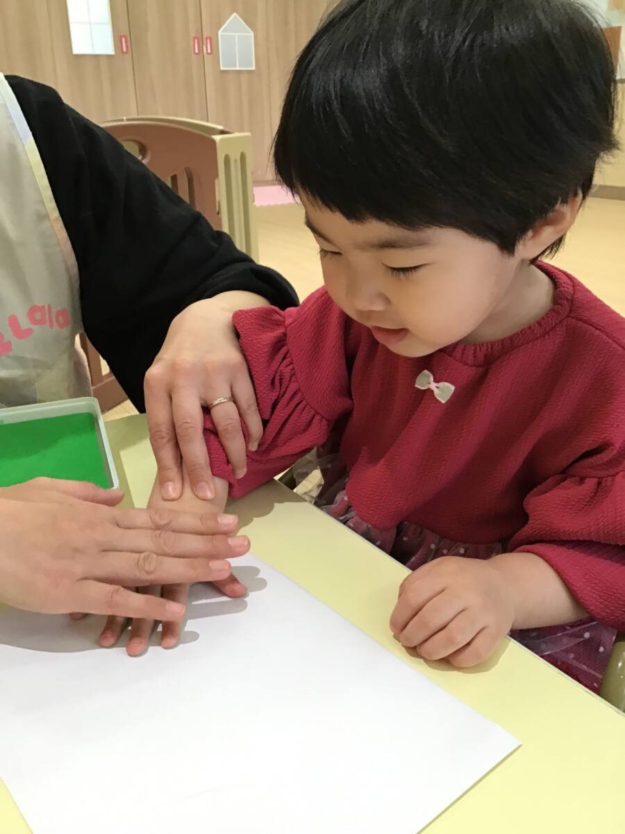お友だちがスタンプしている姿を見て”私もやりたい!”とワクワクした表情で待つお子さま達🥰