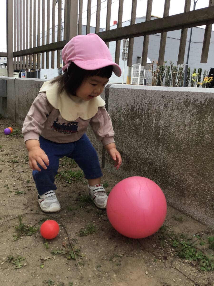 スロープの上り下りをして保育園前でのあそびを楽しみました✨