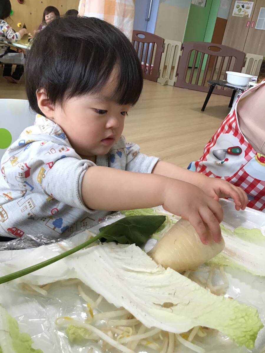様々な野菜の皮を剥いたり。ちぎったり楽しく触れる
