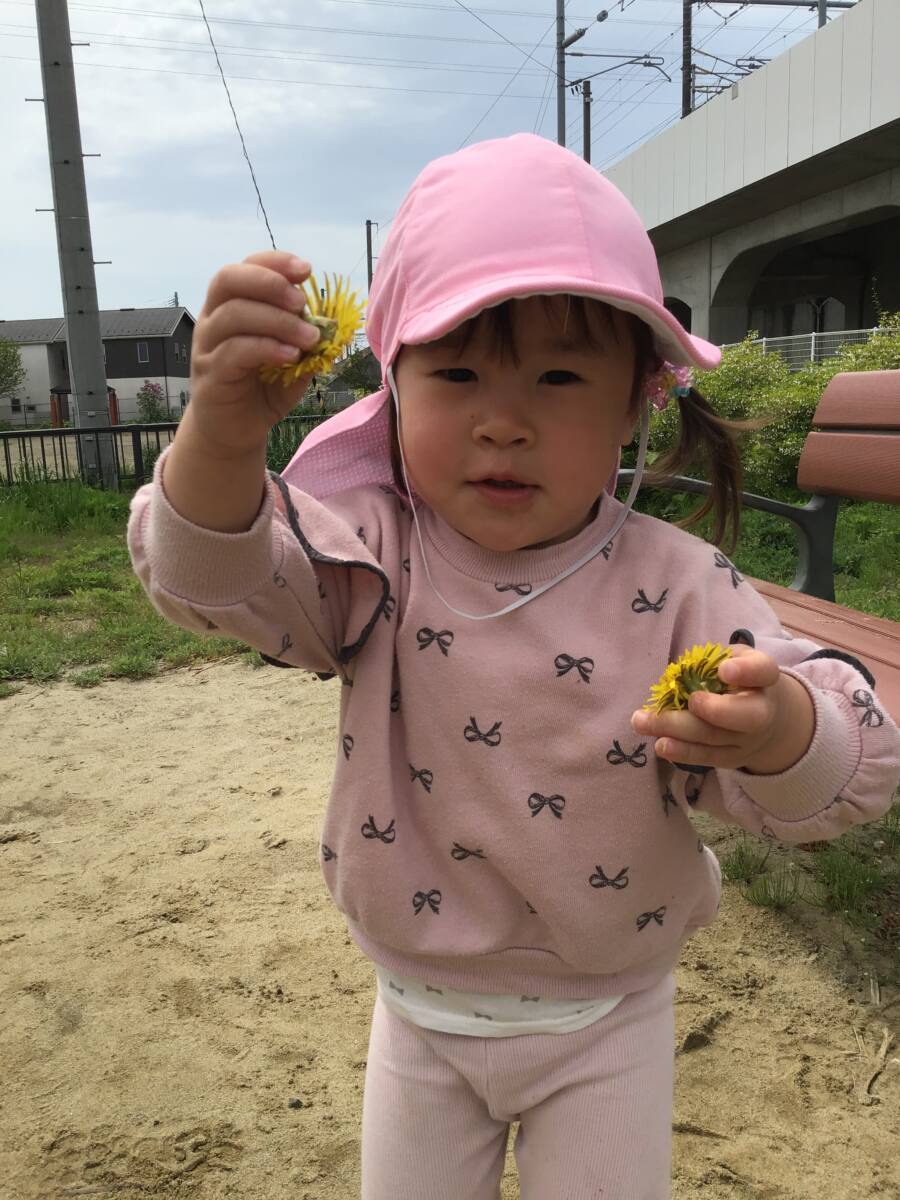 公園でたんぽぽを見つけて嬉しそうにしていました😊
